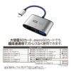 SDカード、microSDカード、Type-Aを同時に認識できるUSB3.2 Gen1対応の超高速USB Type-Cケーブル一体型のカードリーダーです。放熱性に優れたアルミニウム筐体を採用。