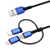 Lightning・Type-C・microUSB Bの3種類のコネクタ搭載機器の充電・データ通信に対応、断線に強いナイロンメッシュケーブルを採用した3in1USBケーブルです。