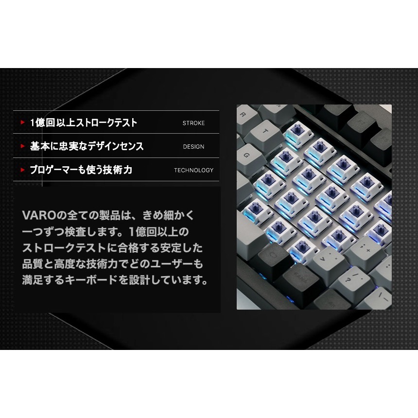シンプルで基本に忠実なデザインセンス。シンプルなデザインに安定した品質と最新の技術が加わったキーボード。付属のカラーキーキャップはどこにもないVAROならではの魅力的な色にしました。