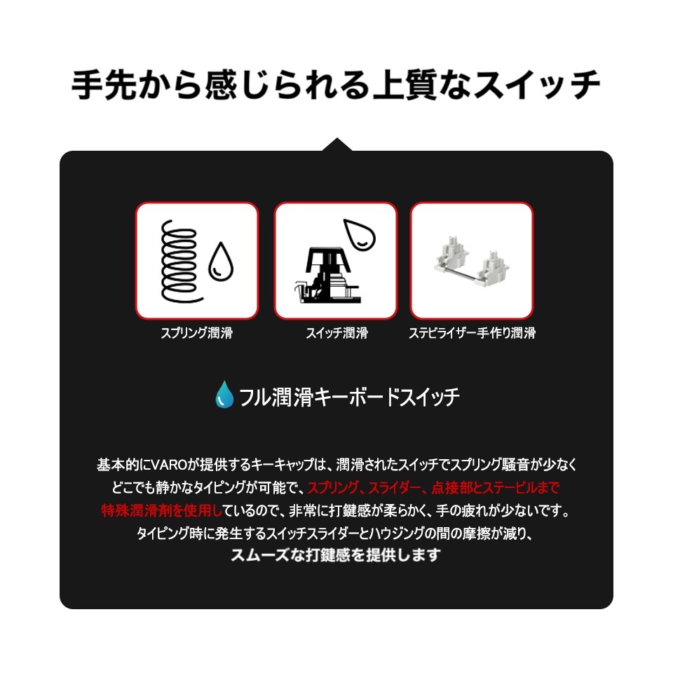 シンプルで基本に忠実なデザインセンス。シンプルなデザインに安定した品質と最新の技術が加わったキーボード。付属のカラーキーキャップはどこにもないVAROならではの魅力的な色にしました。