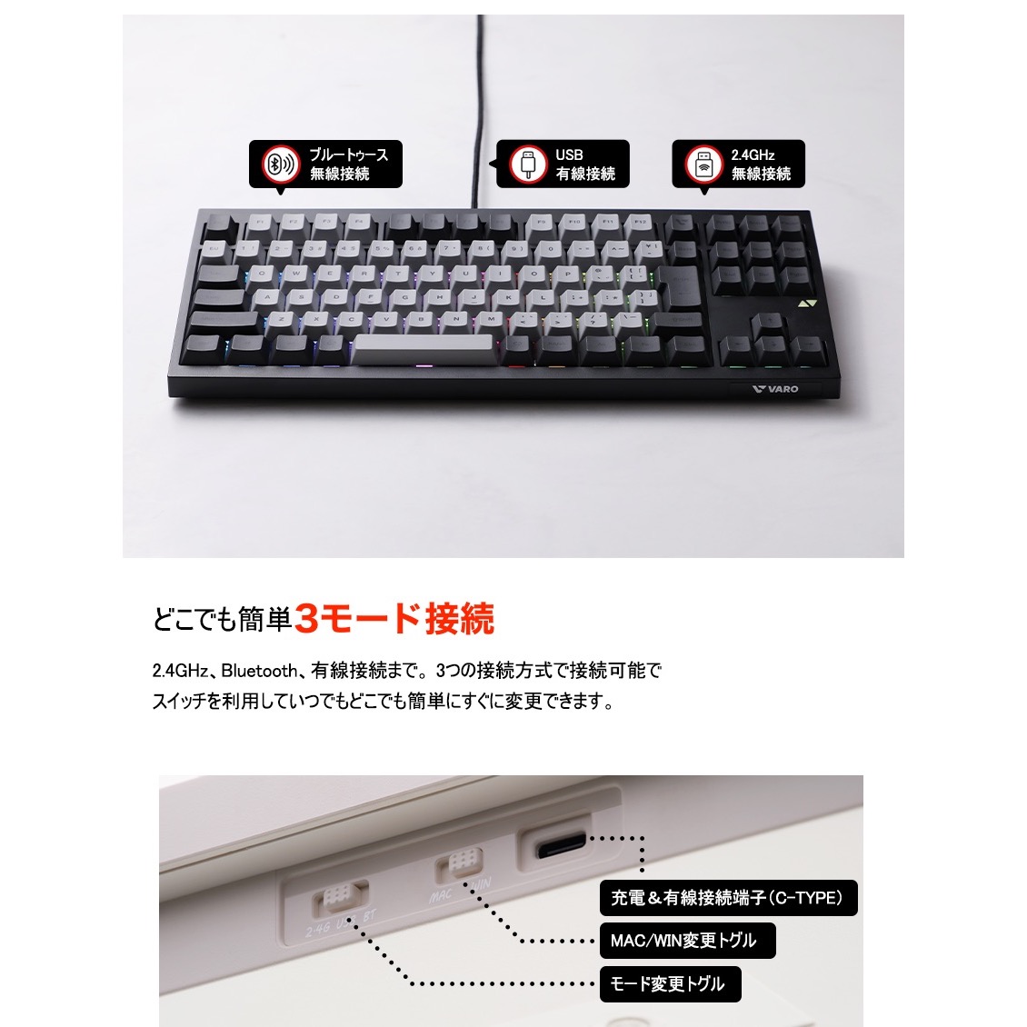 VARO メカニカルキーボード 3モード対応 (SILENT MINT) 日本語配列 80% ブラック VM87-J-VSMB